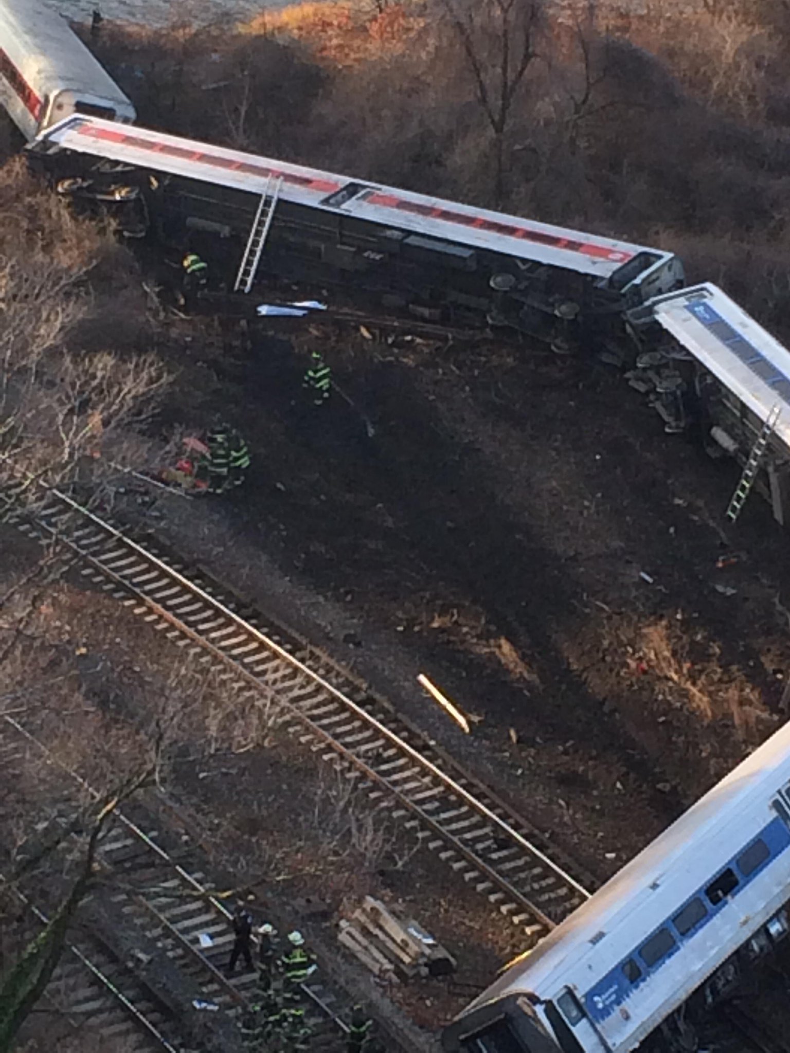 Photo of Metro North passenger train that derailed in the Bronx. Some cars are in the river #NBC4NY pic.twitter.com/WmK9HcKrB4