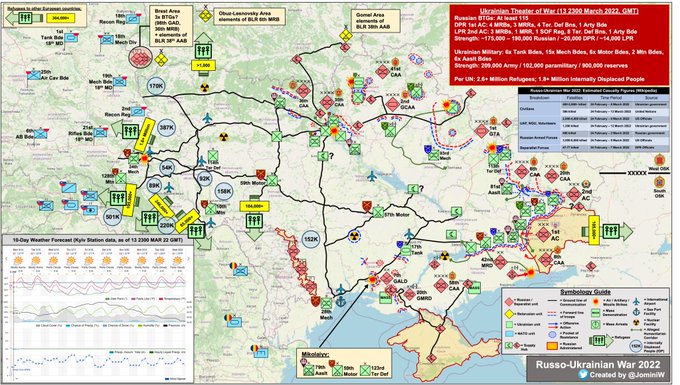 1/ Ukrainian Theater of War, Day 18: Russian forces continued their operational pause in Kyiv and NE with limited attacks in the Mariupol & Donetsk regions. Bombardment of Kharkiv & Mikolayv intensifies. Harassment of Russian supply routes remains effective. #UkraineRussiaWar