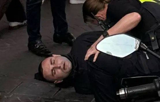 Update 06:58 - Er gaan beelden rond van de mogelijke dader. Hij staat tegen een hek, wordt belaagd en mompelt: "Sorry." De tekst in de tweet: "Witnesses at the scene state that he appears to be a 20-year-old Asian male and possibly mentally challenged in some way."